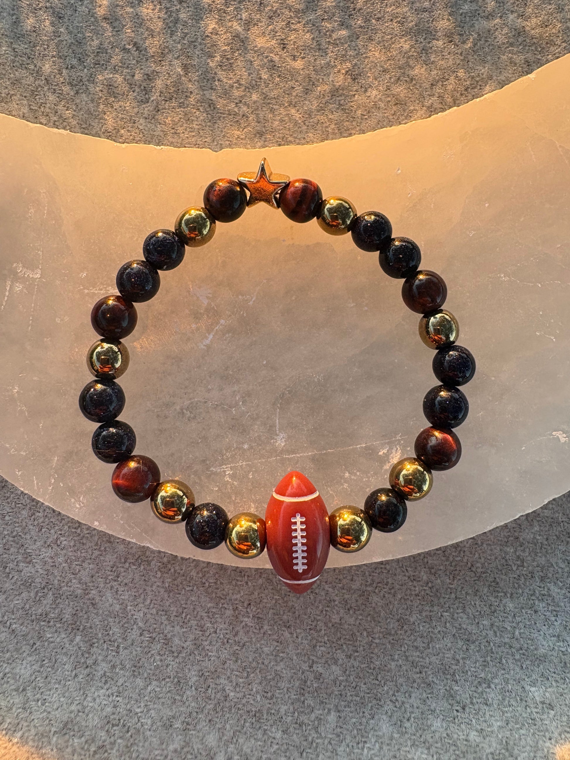 ✨6mm Blue Goldstone, Hematite Pyrite, Red Tigers Eye, Gold Hematite Star & Acrylic Football Bead